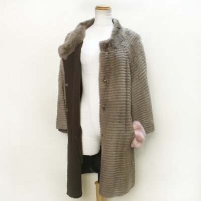 商品名:マスクラット ファー ・ ウール ノーカラー コート